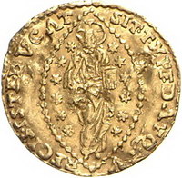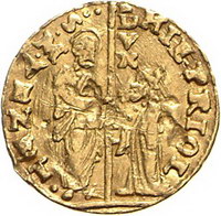 Los-Nummer: Auktion 51 - 3301 Ausländische Münzen und Medaillen Italien-Venedig Gerolamo Priuli 1559-1567, Zecchino. 3,50 g. Gamberini 406, Friedberg 1257, Paolucci S. 65, 11. GOLD. Kratzer, schön - sehr schön Schätzpreis: 125,- Zuschlag: 120,- |