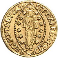 Los-Nummer: Auktion 51 - 3302 Ausländische Münzen und Medaillen Italien-Venedig Pietro Loredan 1567-1570, Zecchino. 3,49 g. PET.LAVR. DVX. Gamberini 432, Friedberg 1259, Paolucci S. 67, 1. GOLD. Sehr schön - vorzüglich Schätzpreis: 200,- Zuschlag: 550,- |