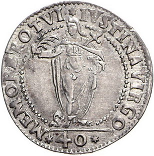 Los-Nummer: Auktion 51 - 3306 Ausländische Münzen und Medaillen Italien-Venedig Alvise I. Mocenigo 1570-1577, 40 Soldi con Santa Giustina. Gamberini 457, Paolucci S. 68, 7. Vorzüglich Schätzpreis: 100,- Zuschlag: 170,- |