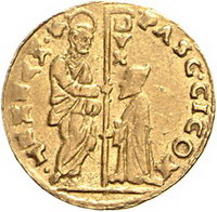 Los-Nummer: Auktion 51 - 3314 Ausländische Münzen und Medaillen Italien-Venedig Pasquale Cicogna 1585-1595, Zecchino. 3,47 g. Gamberini 518, Friedberg 1270, Paolucci S. 75, 1. GOLD. Winz. Kratzer, sehr schön Schätzpreis: 150,- Zuschlag: unverkauft |