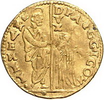 Los-Nummer: Auktion 51 - 3315 Ausländische Münzen und Medaillen Italien-Venedig Pasquale Cicogna 1585-1595, Zecchino. 3,38 g. Gamberini 518, Friedberg 1270, Paolucci S. 75, 1. GOLD. Fast sehr schön Schätzpreis: 125,- Zuschlag: unverkauft |
