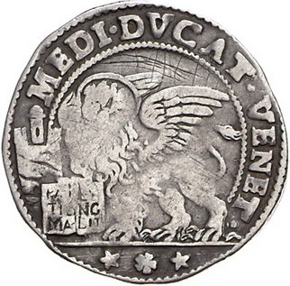 Los-Nummer: Auktion 51 - 3336 Ausländische Münzen und Medaillen Italien-Venedig Alvise Contarini 1676-1684, Mezzo Ducato. Gamberini 1030, Paolucci S. 107, 13. Kratzer, schön Schätzpreis: 30,- Zuschlag: unverkauft |