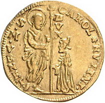 Los-Nummer: Auktion 51 - 3346 Ausländische Münzen und Medaillen Italien-Venedig Carlo Ruzzini 1732-1735, Zecchino. 3,45 g. Gamberini 1408, Friedberg 1384, Paolucci S. 121, 2. GOLD. Sehr schön / vorzüglich Schätzpreis: 200,- Zuschlag: unverkauft |