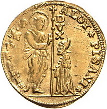Los-Nummer: Auktion 51 - 3347 Ausländische Münzen und Medaillen Italien-Venedig Alvise Pisani 1735-1741, Zecchino. 3,50 g. Gamberini 1449, Friedberg 1391, Paolucci S. 113, 5. GOLD. Kl. Kratzer, sehr schön Schätzpreis: 150,- Zuschlag: unverkauft |
