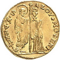 Los-Nummer: Auktion 51 - 3354 Ausländische Münzen und Medaillen Italien-Venedig Alvise IV. Mocenigo 1763-1778, Zecchino. 3,47 g. Gamberini 1702, Friedberg 1421, Paolucci S. 129, 13. GOLD. Prägeschwäche, sehr schön + Schätzpreis: 150,- Zuschlag: unverkauft |