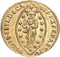 Los-Nummer: Auktion 51 - 3356 Ausländische Münzen und Medaillen Italien-Venedig Paolo Rainier 1779-1789, Zecchino. 3,50 g. Gamberini 1826, Friedberg 1434, Paolucci S. 130, 12. GOLD. Leichte Kratzer, fast Stempelglanz Schätzpreis: 200,- Zuschlag: 190,- |