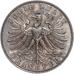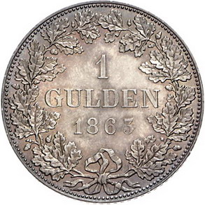 Los-Nummer: Auktion 51 - 811 Altdeutsche Münzen und Medaillen Frankfurt, Stadt Gulden 1863. Jaeger 38, AKS 14. Schöne Patina. Fast Stempelglanz Schätzpreis: 200,- Zuschlag: 230,- |