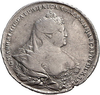 Los-Nummer: Auktion 51 - 3701 Ausländische Münzen und Medaillen Russland Anna Ivanovna 1730-1740, Rubel 1737, Moskau. Davenport 1673, Bitkin 196 ff. Schrötlingsfehler, schön - sehr schön Schätzpreis: 125,- Zuschlag: 180,- |