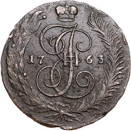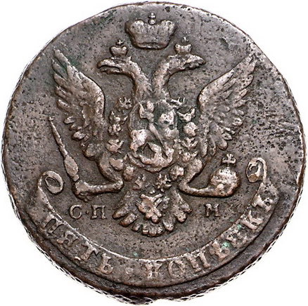 Los-Nummer: Auktion 51 - 3722 Ausländische Münzen und Medaillen Russland Katharina II. 1762-1796, Cu 5 Kopeken 1763, St. Petersburg. Harris 143, Bitkin 564. Randfehler, sehr schön Schätzpreis: 50,- Zuschlag: 60,- |