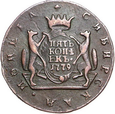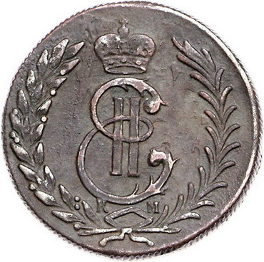 Los-Nummer: Auktion 51 - 3734 Ausländische Münzen und Medaillen Russland Katharina II. 1762-1796, Cu 5 Kopeken 1779 KM, Kolyvan. Für Sibirien. Harris 178, Bitkin 1084. Sehr schön + Schätzpreis: 100,- Zuschlag: 80,- |