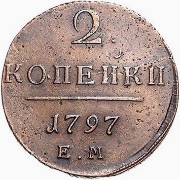 Los-Nummer: Auktion 51 - 3745 Ausländische Münzen und Medaillen Russland Paul I. 1796-1801, Cu 2 Kopeken 1797 EM, Ekaterinburg. Harris 194, Bitkin 111. Vorzüglich Schätzpreis: 75,- Zuschlag: unverkauft |