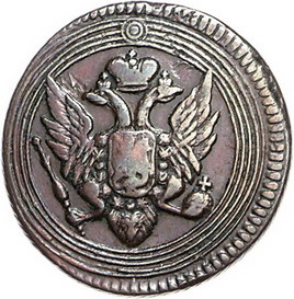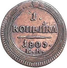 Los-Nummer: Auktion 51 - 3755 Ausländische Münzen und Medaillen Russland Alexander I. 1801-1825, Cu Kopeke 1805 EM, Ekaterinburg. Harris 216, Bitkin 315. Selten. Kl. Kratzer, sehr schön - vorzüglich Schätzpreis: 175,- Zuschlag: 420,- |