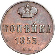 Los-Nummer: Auktion 51 - 3781 Ausländische Münzen und Medaillen Russland Nikolaus I. 1825-1855, Cu Kopeke 1853 BM, Warschau. Harris 276. Sehr schön + Schätzpreis: 50,- Zuschlag: 40,- |