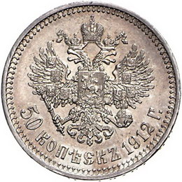 Los-Nummer: Auktion 51 - 3861 Ausländische Münzen und Medaillen Russland Nikolaus II. 1894-1917, 50 Kopeken 1912. Harris 451, Bitkin 91. Vorzüglich / Stempelglanz Schätzpreis: 75,- Zuschlag: unverkauft |