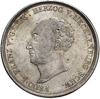 Los-Nummer: Auktion 51 - 1081 Altdeutsche Münzen und Medaillen Mecklenburg-Schwerin Friedrich Franz I. 1785-1837, 2/3 Taler 1828. Jaeger 26 a, AKS 10, Kahnt 288. Rückseite leicht justiert, vorzüglich - Stempelglanz Schätzpreis: 400,- Zuschlag: unverkauft |