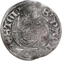 Los-Nummer: Auktion 51 - 1111 Altdeutsche Münzen und Medaillen Münster, Bistum Heinrich III.(XXVII.) von Schwarzburg 1466-1496, Halber Albus, Münster. St. Paulus mit Schwert und Buch / Behelmtes Familienwappen auf Stiftsschild. Ilisch 26.7, Grote 83, Bethe 1563/64 var. Schön + Schätzpreis: 400,- Zuschlag: 340,- |