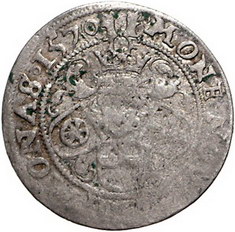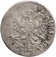 Los-Nummer: Auktion 51 - 1113 Altdeutsche Münzen und Medaillen Münster, Bistum Johann IV. von Hoya 1566-1574, Fürstengroschen (12 Pfennig) 1570. Die behelmten Wappen von Osnabrück, Münster und Paderborn nebeneinander, oben die Hoyaer Bärentatzen / Gekrönter Doppeladler mit Reichapfel auf der Brust, unten der Stiftsschild. Ilisch 33.5 b, Grote 134 var. Prägeschwäche, schön - sehr schön Schätzpreis: 250,- Zuschlag: unverkauft |