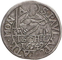 Los-Nummer: Auktion 51 - 1117 Altdeutsche Münzen und Medaillen Münster, Bistum Ferdinand von Bayern 1611-1650, Schilling 1640. Münzzeichen Vogel. Jahreszahl im Abschnitt. Schulze 39 b. Fast sehr schön Schätzpreis: 50,- Zuschlag: 45,- |