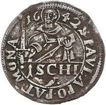 Los-Nummer: Auktion 51 - 1120 Altdeutsche Münzen und Medaillen Münster, Bistum Ferdinand von Bayern 1611-1650, Schilling 1642. Münzzeichen Vogel. Jahreszahl oben in der Umschrift. Schulze zu 46. Sehr schön Schätzpreis: 250,- Zuschlag: 240,- |