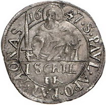 Los-Nummer: Auktion 51 - 1134 Altdeutsche Münzen und Medaillen Münster, Bistum Ferdinand von Bayern 1611-1650, Schilling 1647 EK. Schulze 71 a. Fast sehr schön Schätzpreis: 75,- Zuschlag: 60,- |
