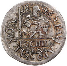 Los-Nummer: Auktion 51 - 1137 Altdeutsche Münzen und Medaillen Münster, Bistum Ferdinand von Bayern 1611-1650, Schilling 1648 EK. Schulze 75. Fast sehr schön Schätzpreis: 75,- Zuschlag: 65,- |