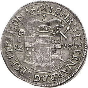Los-Nummer: Auktion 51 - 1152 Altdeutsche Münzen und Medaillen Münster, Bistum Christoph Bernhard von Galen 1650-1678, 1/8 Taler 1678. Schwert teilt die Umschrift nicht. Schulze 117 be var. Prägeschwäche, sehr schön Schätzpreis: 100,- Zuschlag: 110,- |