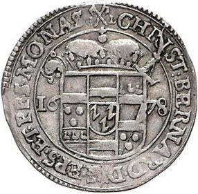 Los-Nummer: Auktion 51 - 1153 Altdeutsche Münzen und Medaillen Münster, Bistum Christoph Bernhard von Galen 1650-1678, 1/8 Taler 1678. Schwert teilt die Umschrift MON-AST. Schulze 117 d var. Sehr schön Schätzpreis: 125,- Zuschlag: 175,- |