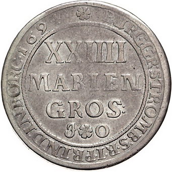 Los-Nummer: Auktion 51 - 1167 Altdeutsche Münzen und Medaillen Münster, Bistum Friedrich Christian von Plettenberg 1688-1706, 24 Mariengroschen 1694 JO. Ovales Wappen. Schulze 143 g, Davenport 692. Sehr schön Schätzpreis: 150,- Zuschlag: 120,- |