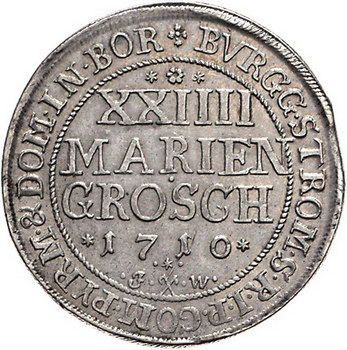 Los-Nummer: Auktion 51 - 1179 Altdeutsche Münzen und Medaillen Münster, Bistum Franz Arnold von Metternich 1706-1718, 24 Mariengroschen 1710 JW. Schulze 172 b, Davenport 694. Fast vorzüglich Schätzpreis: 500,- Zuschlag: 400,- |