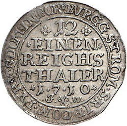 Los-Nummer: Auktion 51 - 1180 Altdeutsche Münzen und Medaillen Münster, Bistum Franz Arnold von Metternich 1706-1718, 1/12 Taler 1710 JW. Schulze 174 d var. Winz. Schrötlingsfehler, fast vorzüglich Schätzpreis: 75,- Zuschlag: 65,- |