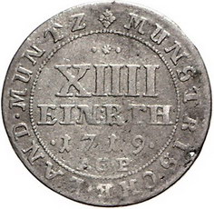 Los-Nummer: Auktion 51 - 1191 Altdeutsche Münzen und Medaillen Münster, Bistum Sedisvakanz 1719, 1/14 Taler 1719 AGP. Schulze 214, Zepernick 142. Fast sehr schön Schätzpreis: 50,- Zuschlag: unverkauft |