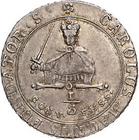 Los-Nummer: Auktion 51 - 1200 Altdeutsche Münzen und Medaillen Münster, Bistum Sedisvakanz 1801, 1/3 Taler 1801, Clausthal. Schulze 271, Zepernick 230. Sehr schön - vorzüglich Schätzpreis: 150,- Zuschlag: 120,- |