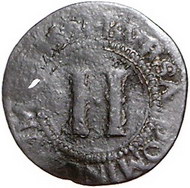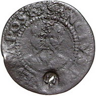 Los-Nummer: Auktion 51 - 1204 Altdeutsche Münzen und Medaillen Münster, Domkapitel Cu 2 Pfennig 1591 mit Gegenstempel Drei Wolfsangeln (Brabeck) auf der Rückseite. Weinrich 20, Weingärtner 27. Kl. Loch, schön Schätzpreis: 50,- Zuschlag: unverkauft |