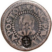 Los-Nummer: Auktion 51 - 1206 Altdeutsche Münzen und Medaillen Münster, Domkapitel Dickabschlag von den Stempeln des Cu Pfennig 1591 in doppeltem Gewicht. Mit Gegenstempel Doppellilie (Schmiesing) auf der Vorderseite. Weinrich 21 b, Weingärtner 29. 3,07 g. Äußerst selten. Fast sehr schön Schätzpreis: 200,- Zuschlag: 160,- |
