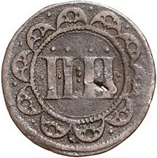 Los-Nummer: Auktion 51 - 1226 Altdeutsche Münzen und Medaillen Münster, Stadt Cu 4 Pfennig 1560. Peus 19, Weingärtner 209. Äußerst selten. Kl. Einstich, schön / fast sehr schön Schätzpreis: 500,- Zuschlag: 400,- |