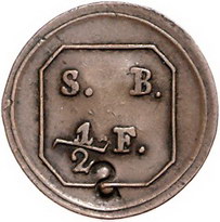 Los-Nummer: Auktion 51 - 1816 Altdeutsche Münzen und Medaillen Stolberg-Wernigerode Hüttenamt Ilsenburg, Einseitige Cu Marke für Holzkohle o.J. S.B. (Stolbergisches Bergwerk) / 1/2 .F. (Fuder) und Punze spiegelverkehrtes S, Punze Z auf der Rückseite. Friederich 1458. Sehr schön + Schätzpreis: 200,- Zuschlag: 475,- |