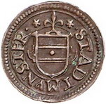 Los-Nummer: Auktion 51 - 1234 Altdeutsche Münzen und Medaillen Münster, Stadt Cu Heller o.J. Vier Varianten. Peus 37, 38 (2), 39, Weingärtner 223 (4). 4 Stück. Sehr schön Schätzpreis: 150,- Zuschlag: 120,- |