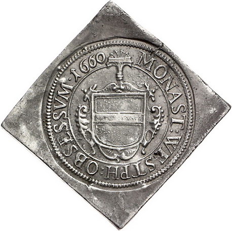 Los-Nummer: Auktion 51 - 1240 Altdeutsche Münzen und Medaillen Münster, Stadt Einseitige Talerklippe 1660. Geprägt während der Belagerung der Stadt durch Christoph Bernhard von Galen. Peus 50 , Mailliet Tf. 87,2. Sehr schön + Schätzpreis: 250,- Zuschlag: unverkauft |
