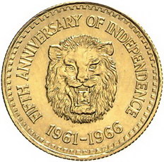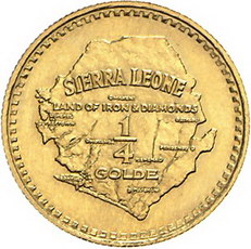 Los-Nummer: Auktion 51 - 4006 Ausländische Münzen und Medaillen Sierra Leone Republik. Ab 1961, 1/4 Golde 1966. KM 22, Friedberg 3. GOLD. Vorzüglich - Stempelglanz Schätzpreis: 250,- Zuschlag: unverkauft |