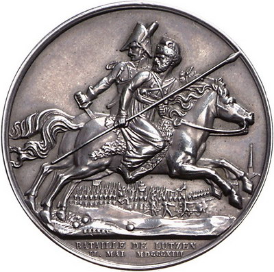 Los-Nummer: Auktion 51 - 3023 Ausländische Münzen und Medaillen Frankreich Medaillen Napoleons I. Medaille 1813, von Depaulis und Brenet. Auf die Schlacht bei Lützen. Uniformiertes Brustbild Napoleons nach rechts / Preußischer Reiter und Kosake fliehend. Slg. Julius 2627, Bramsen 1229. 41 mm, 35,34 g. Randgravur: ARGENT. Vorzüglich Schätzpreis: 200,- Zuschlag: 525,- |