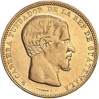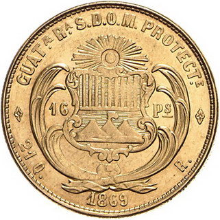 Los-Nummer: Auktion 51 - 3123 Ausländische Münzen und Medaillen Guatemala Republik seit, 16 Pesos 1869. Friedberg 39. GOLD. Vorzüglich Schätzpreis: 2000,- Zuschlag: 1900,- |