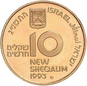 Los-Nummer: Auktion 51 - 3162 Ausländische Münzen und Medaillen Israel 10 Neue Shekalim 1993. 45. Jahrestag der Unabhängigkeit. Friedberg 43, K.M. 242. GOLD. Polierte Platte. Fast Stempelglanz Schätzpreis: 400,- Zuschlag: 370,- |