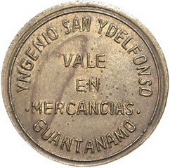 Los-Nummer: Auktion 51 - 3394 Ausländische Münzen und Medaillen Kuba-Plantagentoken Oriente, Me 20 Centavos o.J. YNGENIO SAN YDELFONSO, GUANTANAMO, VALE EN MERCANCIAS / 20 CENTAVOS. Gamez Seite 39. Vorzüglich Schätzpreis: 125,- Zuschlag: unverkauft |