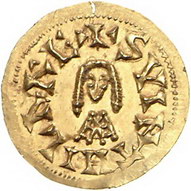 Los-Nummer: Auktion 51 - 4007 Ausländische Münzen und Medaillen Spanien Visigothen. Suinthila 621-631, Tremissis, Barbi. SVINTHILAREX Kopf +PIVSBARBI Kopf. Cayon 250. GOLD. Prachtexemplar. Vorzüglich - Stempelglanz Schätzpreis: 750,- Zuschlag: unverkauft |
