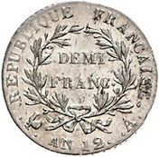 Los-Nummer: Auktion 51 - 3010 Ausländische Münzen und Medaillen Frankreich Napoleon I. 1804-1814, 1815, 1/2 Franc AN 12 A (1803) Paris. Consulat. Gadoury 394. Vorzüglich - Stempelglanz Schätzpreis: 200,- Zuschlag: 295,- |