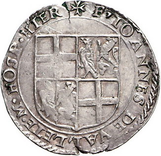 Los-Nummer: Auktion 51 - 3409 Ausländische Münzen und Medaillen Malta Jean de la Vallete 1557-1568, 4 Tari o.J. Liegender Kopf Johannes des Täufers / Wappen. Restelli/Sammut 44 ff. Kl. Schrötlingsfehler am Rand, sehr schön Schätzpreis: 300,- Zuschlag: 370,- |