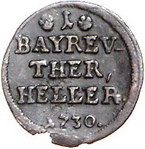 Los-Nummer: Auktion 51 - 183 Altdeutsche Münzen und Medaillen Brandenburg-Bayreuth Georg Friedrich Karl 1726-1735, Cu Heller 1730. Monogramm / Wert. Slg. Wilmersdörffer - , WAG Auktion 8, Nr. 227. Schrötlingsfehler, sehr schön - vorzüglich Schätzpreis: 50,- Zuschlag: unverkauft |