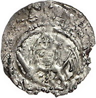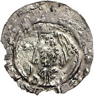Los-Nummer: Auktion 51 - 192 Altdeutsche Münzen und Medaillen Brandenburg-Preußen Przibislaw Heinrich 1127-1150, Dünnpfennig, Brandenburg. 0,69 g. Brustbild von vorn mit Schwert und Fahne / Brustbild der Fürstin Petrissa von vorn, links Stern, rechts vier Kugeln. Bahrfeldt 3, Slg. Bonhoff 785, Berger 1652. Mehrere Randausbrüche, sehr schön Schätzpreis: 50,- Zuschlag: 125,- |