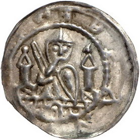 Los-Nummer: Auktion 51 - 195 Altdeutsche Münzen und Medaillen Brandenburg-Preußen Albrecht der Bär 1134-1157, Brakteat, Brandenburg. 0,97 g. +BRANDEBVRG Brustbild mit Schwert und Schild zwischen zwei Türmen über Mauer. Bahrfeldt 14 a, Thormann 541, Slg. Bonhoff 787, Slg. Löbbecke 423, Berger 1658. Minimal dezentriert, sehr schön + Schätzpreis: 750,- Zuschlag: 1300,- |
