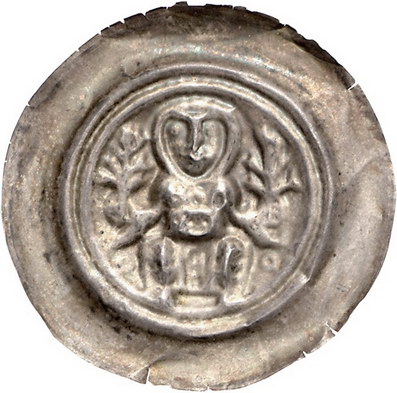 Los-Nummer: Auktion 51 - 1440 Altdeutsche Münzen und Medaillen Quedlinburg-Gera, Münzstätte der Abtei . Jahrhundert. Agnes von Meißen bis Betradis II. Brakteat. 0,74 g. Sitzende Äbtissin, in jeder Hand einen Weidenzweig, unten je ein Ringel. Mehl 325, Schmidt u. Knab 53, Hausmann GA 44 , Slg. Bonhoff 950, Slg. Bahrfeldt 1828. Sehr schön Schätzpreis: 300,- Zuschlag: 675,- |